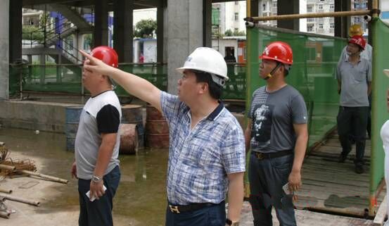2015年6月13日周六上午,集團(tuán)公司召開完周行政工作例會后,在總經(jīng)理徐遠(yuǎn)征同志的帶領(lǐng)下,市場管理部、工程管理部、招投標(biāo)部、綜合管理部、市政分公司負(fù)責(zé)人第一站來到蔡甸大拇指廣場檢查施工現(xiàn)場文明施工整改情況,總經(jīng)理首先肯定了上次檢查整改后施工現(xiàn)場明顯改觀,隨后就進(jìn)一步完善圍擋角區(qū)、安全帽佩戴等進(jìn)一步提出了要求;第二站來到大集張堡小學(xué)施工現(xiàn)場,對墻基坑深度提出了嚴(yán)格按圖紙施工的規(guī)范要求,安排由公司工程管理部對該施工工地實行24小時嚴(yán)格監(jiān)管的做法得到了校方領(lǐng)導(dǎo)的充分肯定。