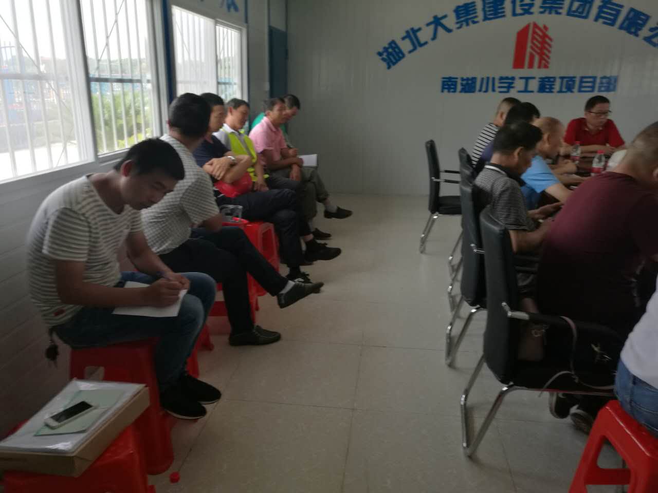 會議開始, 由南湖小學(xué)項目施工員介紹了該項目的主要情況及進(jìn)度,并表達(dá)了南湖小學(xué)項目創(chuàng)杯爭優(yōu)的決心,確保楚天杯,爭創(chuàng)魯班獎,并對施工工藝細(xì)節(jié)和各個操作班組制定了具體規(guī)范和標(biāo)準(zhǔn)。