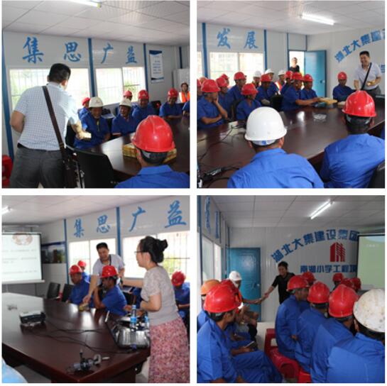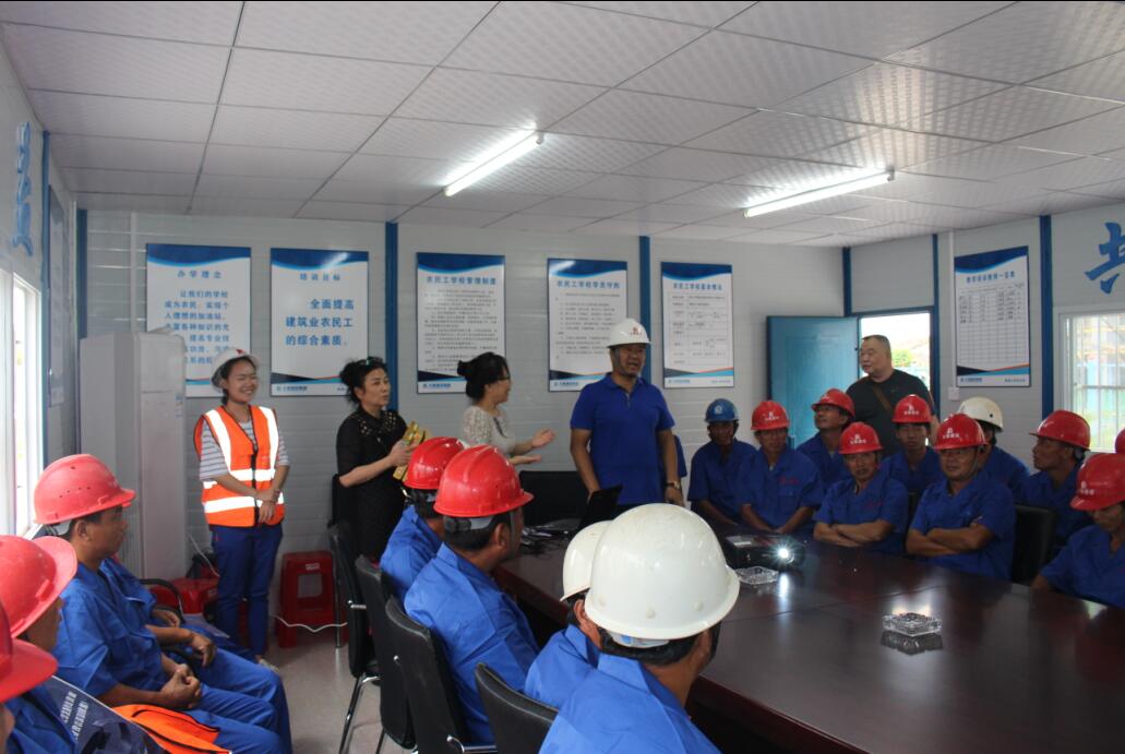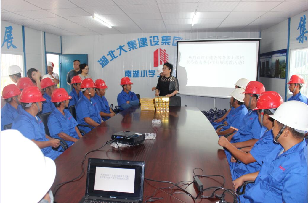 8月30日,市城建委、市人事局、市建筑工程質(zhì)量監(jiān)督站、蔡甸區(qū)監(jiān)管站一行領(lǐng)導(dǎo)蒞臨集團(tuán)南湖小學(xué)項(xiàng)目開展送教活動,現(xiàn)場向工人發(fā)放保溫杯,毛巾、球鞋、收音機(jī)等生活用品和文娛用品,并通過有獎(jiǎng)問答的形式向現(xiàn)場務(wù)工人員進(jìn)行了生動有趣的安全教育和法律保險(xiǎn)知識普及,以增強(qiáng)農(nóng)民工的道德法制意識和安全文明施工意識,更好地適應(yīng)現(xiàn)代化城市建設(shè)的需要!活動現(xiàn)場,兩位老師親切和藹,工人積極踴躍,場面熱烈活絡(luò)!