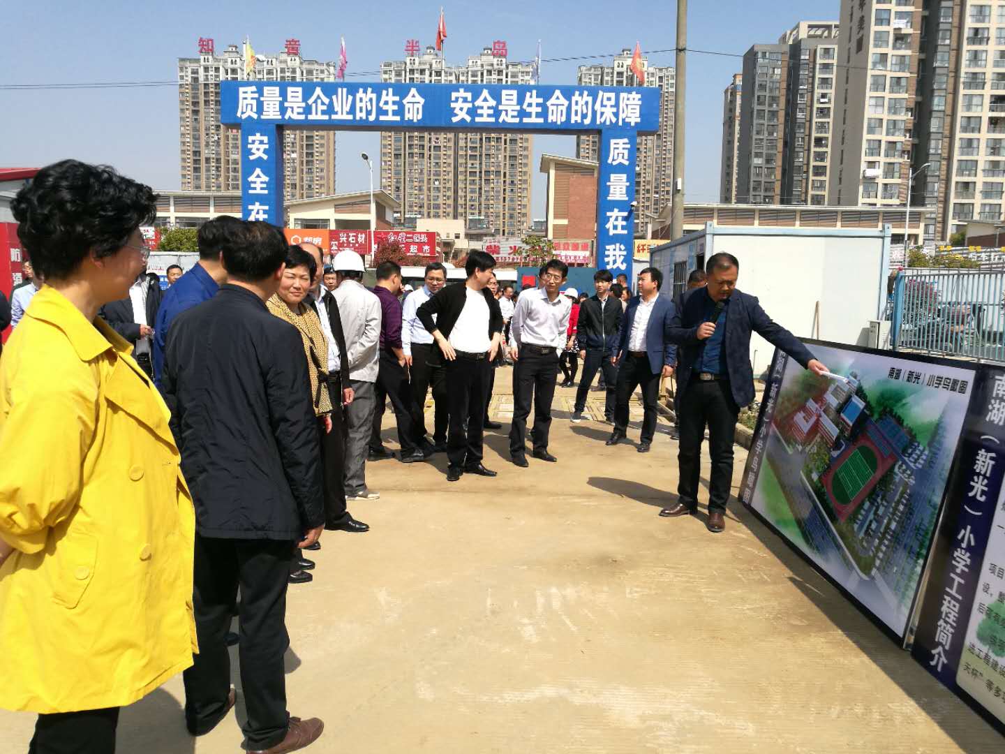 2018年3月28日上午10:00,蔡甸區(qū)2018年第一季度“重大項目拼搏趕超現(xiàn)場會”走進蔡甸區(qū)南湖(新光)小學在建項目部,參加出席的人員有:蔡甸區(qū)區(qū)長彭巧娣,蔡甸區(qū)黨委、政府、人大、政協(xié)領(lǐng)導(dǎo),蔡甸區(qū)教育局以及各部、委、局主要領(lǐng)導(dǎo),各鄉(xiāng)、鎮(zhèn)、廠主要負責人等共計100余人。