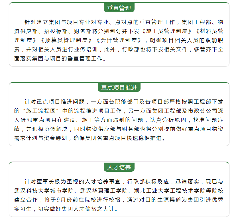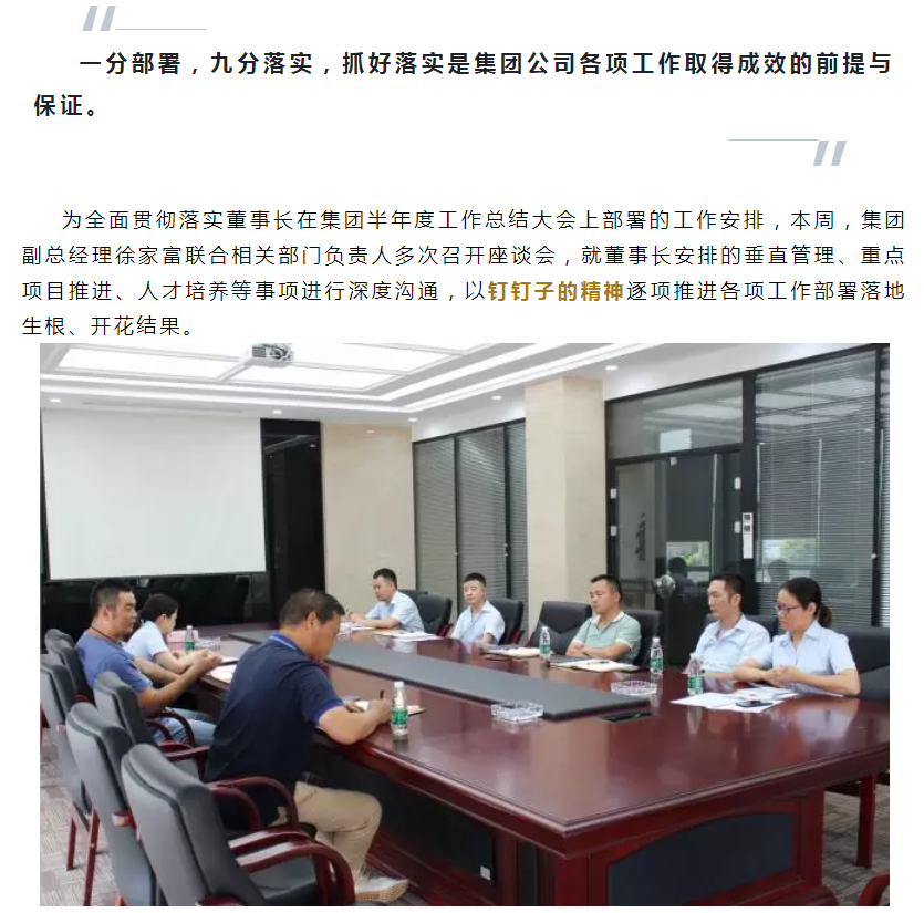 強(qiáng)化組織管理 層層動(dòng)員落實(shí)——集團(tuán)各部門(mén)逐一落實(shí)董事長(zhǎng)半年度工作安排