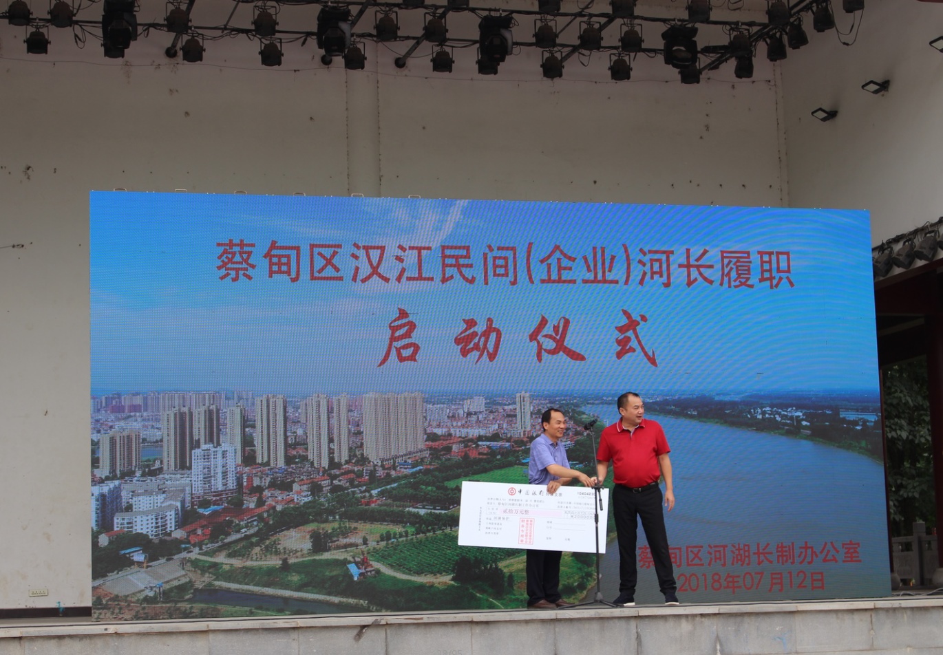 蔡甸區(qū)企業(yè)家協(xié)會、蔡甸區(qū)企業(yè)聯(lián)合會代表向蔡甸區(qū)河湖長制辦公室捐贈河湖保護獎勵基金20萬元