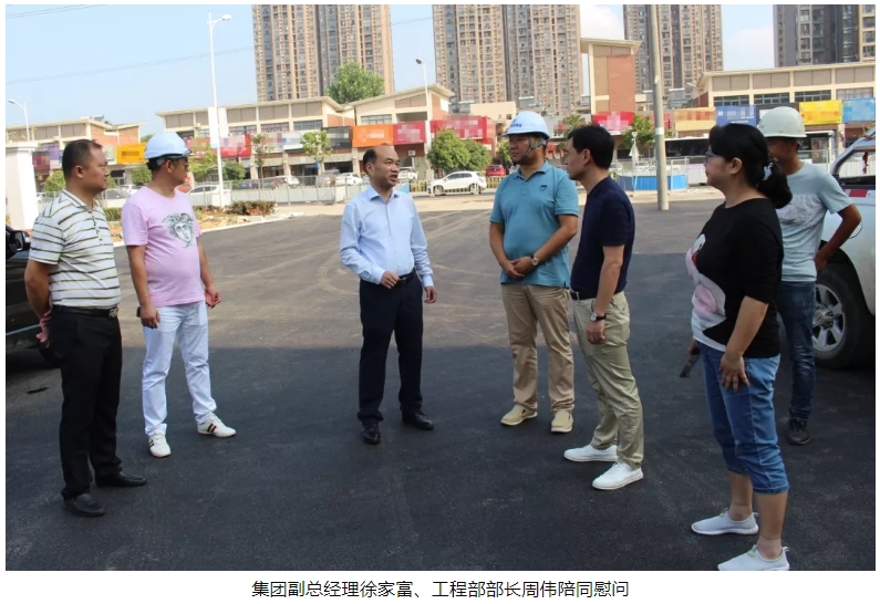 炎炎夏日送清涼,絲絲關(guān)懷暖人心。7月24日,蔡甸區(qū)大集街黨工委書記曹克斌、副書記吳永峰,工會(huì)副主席劉浩等領(lǐng)導(dǎo)蒞臨南湖(新光)小學(xué)項(xiàng)目開展送清涼慰問活動(dòng),為項(xiàng)目上奮戰(zhàn)在高溫一線的工作人員送來綠茶、礦泉水、十滴水、人丹等防暑降溫物資,集團(tuán)副總經(jīng)理徐家富、工程部部長(zhǎng)周偉陪同慰問并向各位領(lǐng)導(dǎo)詳細(xì)講解了項(xiàng)目建設(shè)情況。