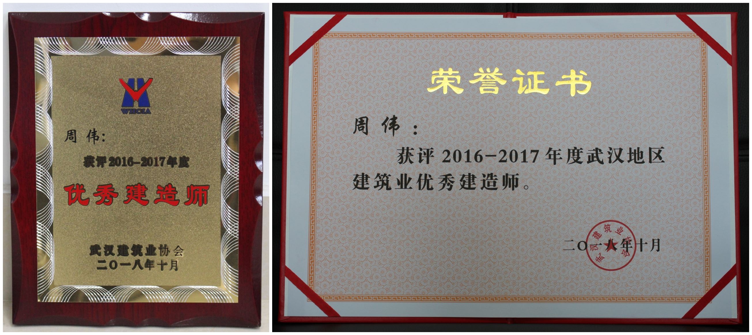 項(xiàng)目經(jīng)理周偉榮獲“2016-2017年度武漢地區(qū)建筑業(yè)優(yōu)秀建造師”稱號