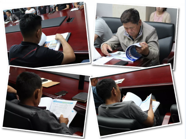 工程部為每個(gè)項(xiàng)目部發(fā)放4月份質(zhì)量安全檢查書冊(cè),項(xiàng)目負(fù)責(zé)人認(rèn)真閱讀
