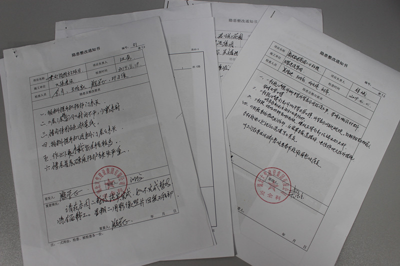 集團工程部秉持著“隱患就是事故”的原則,踐行著“嚴、細、實”的理念,依次到泰禾君悅花園、碧桂園光谷云境、大集消防站、小集還建社區(qū)五期地下室、大集北污水提升泵站等項目進行了嚴格細致的全面檢查,尤其是對危險性高的深基坑、腳手架、模版支撐、臨邊孔洞、施工用電、起重機械作業(yè)、人員習慣性違章等重要部位和關鍵環(huán)節(jié)進行重點排查。對發(fā)現(xiàn)的安全隱患和問題,能現(xiàn)場整改的要求現(xiàn)場安全負責人立即整改;對于現(xiàn)場不能立即整改的,當場下達整改通知書、檢查記錄等, 責令限期整改到位,該開罰單的也絲毫不留情面;對重大隱患實時跟蹤監(jiān)管、待整改后進行復查。