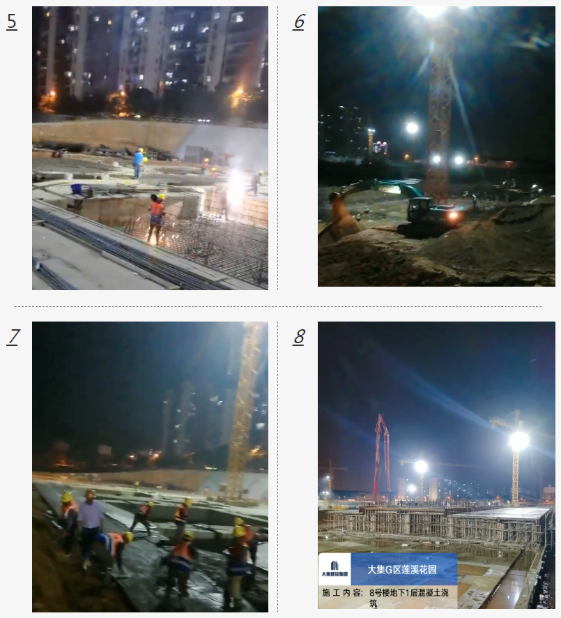 大集G區(qū)蓮溪花園項(xiàng)目作為蔡甸區(qū)重要的民生項(xiàng)目之一,總建筑面積超過26萬平方米,其中地下室面積約5.28萬平方米(人防工程1萬多平方米)。該項(xiàng)目自5月8日正式開工以來,施工任務(wù)重,工期要求緊,項(xiàng)目部團(tuán)隊集中人力、物力,克服各種問題和困難,保安全、抓質(zhì)量,晝夜施工,挑燈夜戰(zhàn),全力以赴加快項(xiàng)目建設(shè)進(jìn)度。