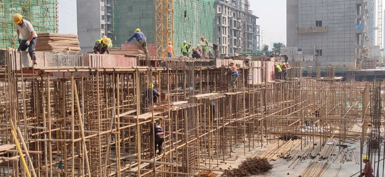 半個(gè)月的陰雨連綿之后,突然放晴的天氣讓各工地顯得格外忙碌,一大早,各施工現(xiàn)場已是人員繁忙,機(jī)器轟隆,一派井然有序、熱火朝天之象。