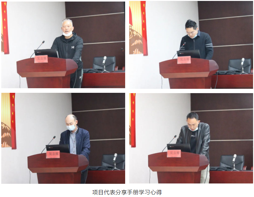 項(xiàng)目經(jīng)理代表周感書、房建施工員代表魏巍、房建安全員代表張彥偉以及市政施工員代表彭文杰依次上臺(tái),從不同角度分享了他們對《湖北省質(zhì)量安全手冊》的學(xué)習(xí)心得。
