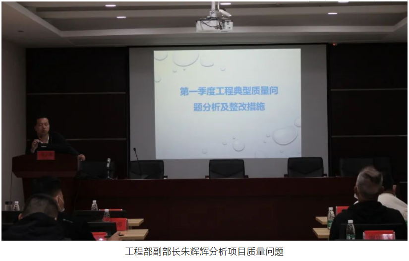 隨后,會(huì)議進(jìn)入質(zhì)量、安全隱患分析環(huán)節(jié),工程部副部長朱輝輝及安全主管秦春波采用PPT通報(bào)問題的方式,照片配合講述,更直觀的把項(xiàng)目質(zhì)量、安全隱患問題展現(xiàn)在大家面前,朱工和秦工結(jié)合項(xiàng)目現(xiàn)場存在的質(zhì)量、安全問題,著重分析了問題產(chǎn)生的原因以及現(xiàn)場的安全管理情況,并逐一對各項(xiàng)目提出了相應(yīng)的整改措施。