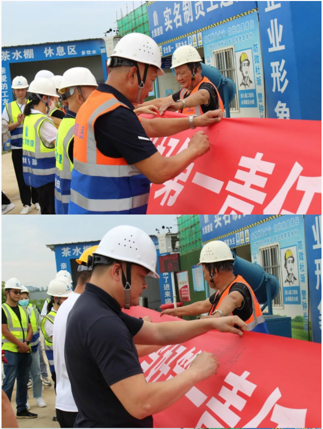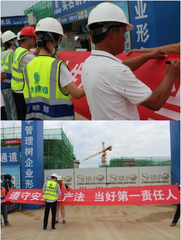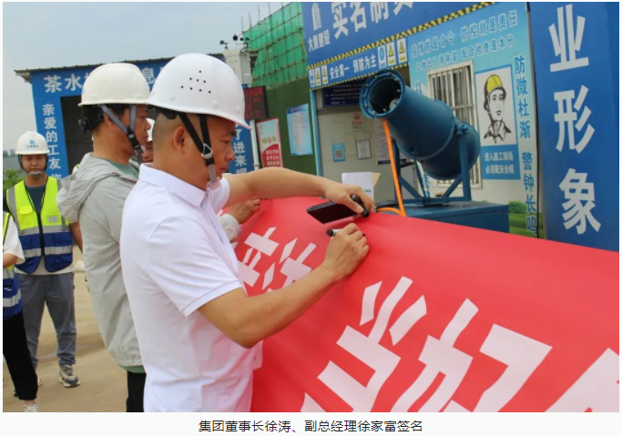 活動開始,集團董事長徐濤、副總經(jīng)理徐家富及各部門負責(zé)人、各項目經(jīng)理率先在“遵守安全生產(chǎn)法,當(dāng)好第一責(zé)任人”條幅上鄭重簽名,寫下對肩負安全生產(chǎn)責(zé)任的承諾,隨后各項目施工員、安全員紛紛在條幅上寫下自己的名字,表達對做好安全生產(chǎn)相關(guān)工作的信心和決心。