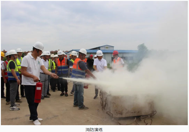 接下來,進入消防演練環(huán)節(jié)。集團公司工程部安全主管秦春波向全體人員詳細講解了滅火器的正確使用方法及在滅火過程中需要注意的事項,在實操訓(xùn)練過程中,大家拿起滅火器,對準(zhǔn)火源根部,按照使用步驟,一看二拔三壓四噴進行了實際操作體驗,迅速滅掉了現(xiàn)場模擬的著火點。