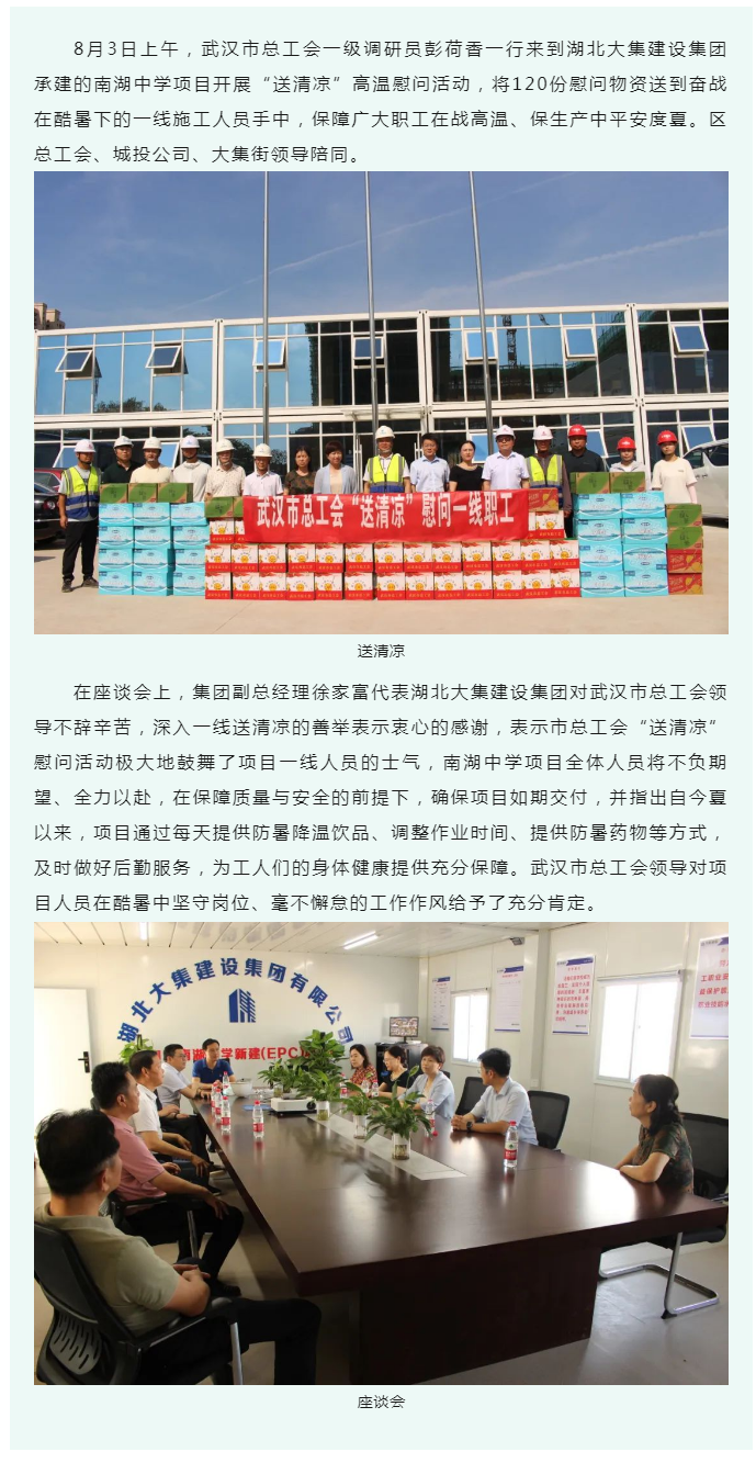 武漢市總工會“送清涼”慰問南湖中學(xué)項目一線人員