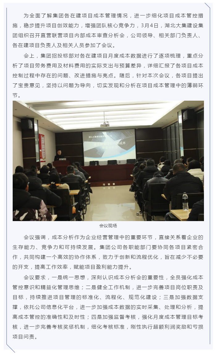 成本管控|湖北大集建設(shè)集團(tuán)召開項(xiàng)目內(nèi)部成本審查分析會(huì)