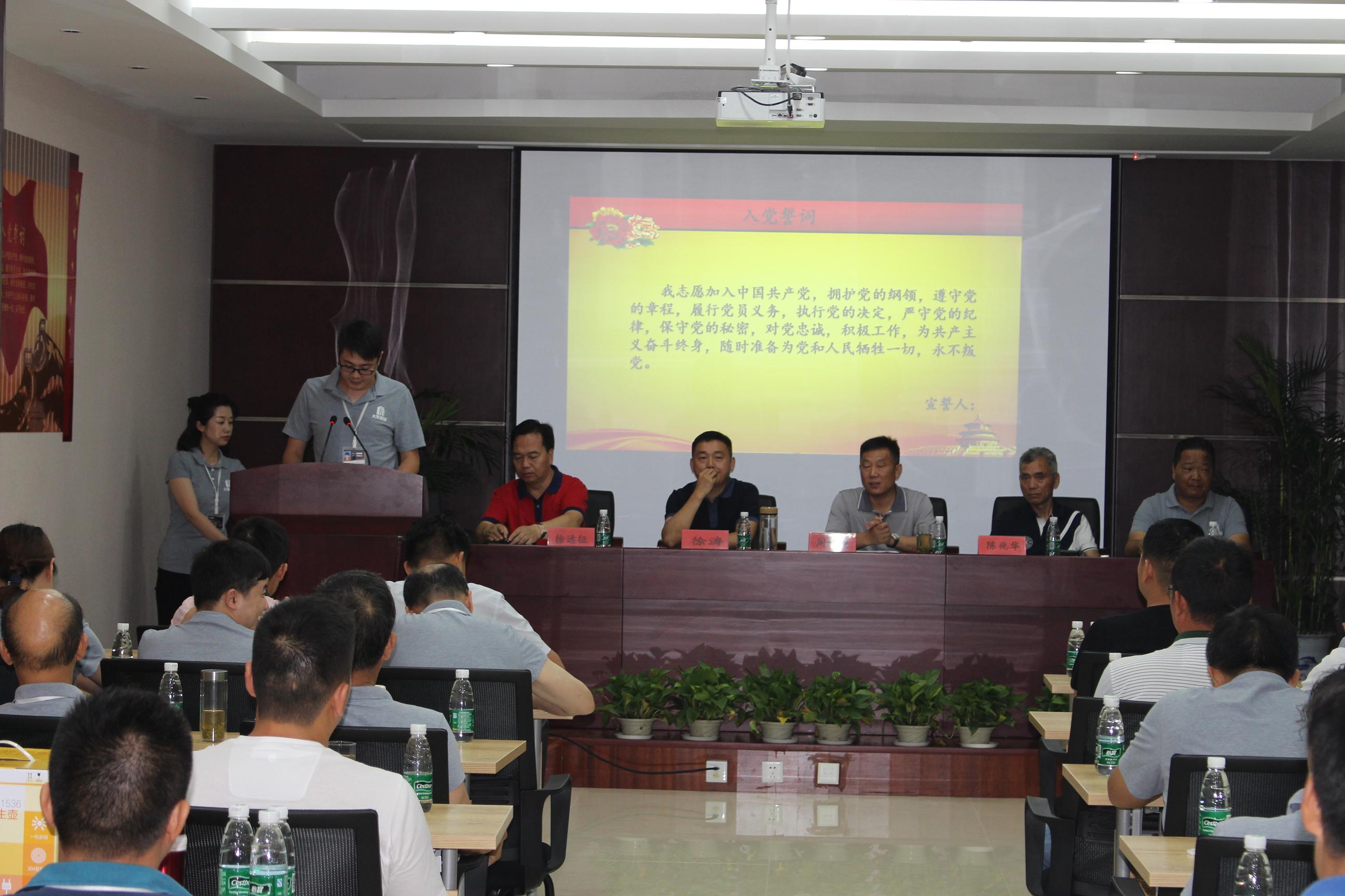 在慷慨激昂的大合唱《沒有共產(chǎn)黨就沒有新中國》中,會(huì)議拉開了序幕,熱血沸騰的歌聲結(jié)束后,由集團(tuán)黨委副書記徐遠(yuǎn)征同志帶領(lǐng)新黨員做入黨宣誓,老黨員重溫入黨誓詞。