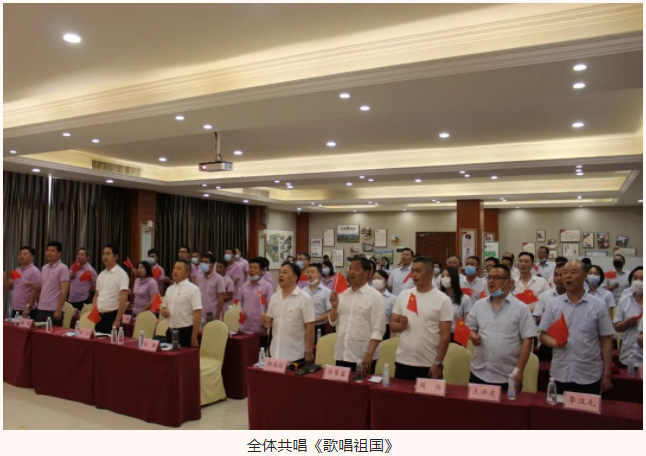 “五星紅旗迎風(fēng)飄揚(yáng),勝利歌聲多么響亮;歌唱我們親愛的祖國(guó),從今走向繁榮富強(qiáng)……”會(huì)議最后,全體起立,共唱《歌唱祖國(guó)》,用嘹亮的歌聲表達(dá)了對(duì)黨和祖國(guó)的無限熱愛和深深祝福。