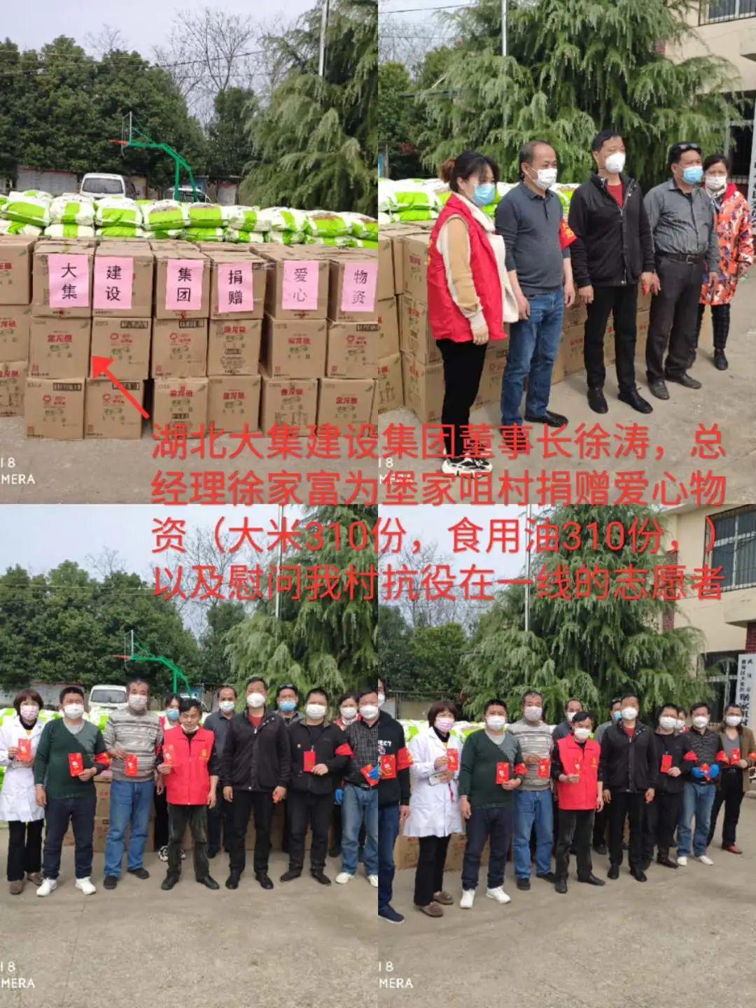徐總代表集團(tuán)慰問一線志愿者,代表集團(tuán)向堡家嘴村每家每戶捐贈(zèng)50斤大米、5升油,物資累計(jì)價(jià)值12萬(wàn)元