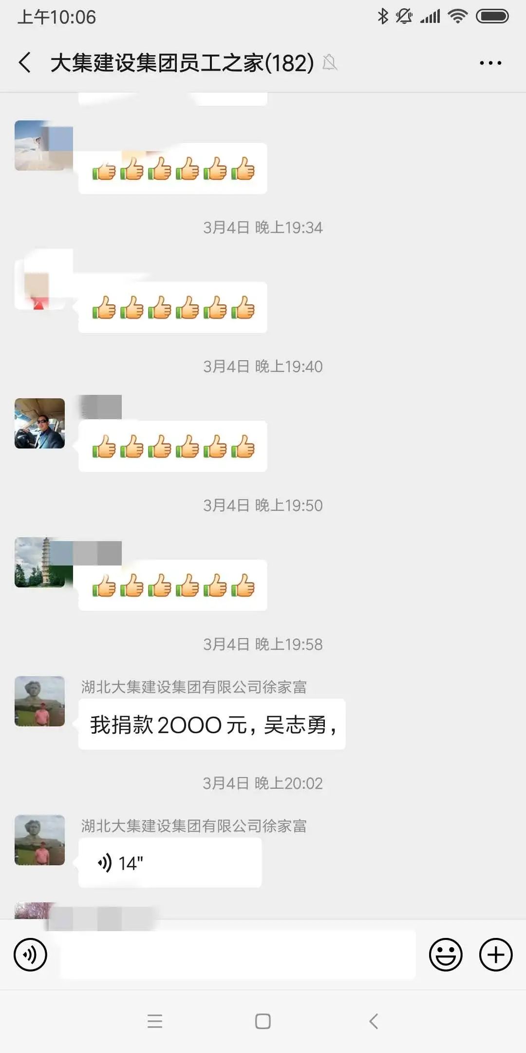 因?yàn)樯眢w原因,他沒能參與公司方艙建設(shè)的高強(qiáng)度任務(wù),徐總表現(xiàn)的極為遺憾:“方艙建設(shè)我是去不了了,我只能在幕后做點(diǎn)小事情!”他口中的小事,就是援助公安局建設(shè)重要卡點(diǎn),代表公司慰問一線抗疫志愿者,代表公司向堡家嘴村捐贈(zèng)8噸米、3噸油的愛心物資,并在疫情肆虐的第一時(shí)間組織員工共同抗疫,帶頭捐款1萬(wàn)元;積極組織公司黨員捐款,帶頭捐款2000元,甚至在抗疫戰(zhàn)線轉(zhuǎn)移到街道、村鎮(zhèn)等基層后,在得知部分村鎮(zhèn)醫(yī)療防護(hù)用品緊缺的情況下,他還以個(gè)人名義向堡家嘴村捐贈(zèng)了口罩、消毒液等價(jià)值萬(wàn)余元的物資,向張家渡村捐款數(shù)千元支援防疫工作,向南湖小學(xué)捐贈(zèng)了一次性口罩、消毒液、抗菌洗手液、紫外線滅菌燈車架等價(jià)值近三萬(wàn)元的物資……