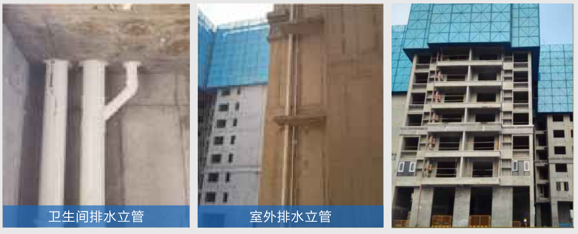 本工程進行流水交叉同步作業(yè),室內(nèi)排水及室外排水直接進行預(yù)埋安裝,讓砼直接包裹住止水環(huán),不留冷縫,減少日后滲漏之風(fēng)險。實現(xiàn)了一步到位,加快施工進度,降低成本,可提前插入精裝修作業(yè),實現(xiàn)了流水作業(yè)。