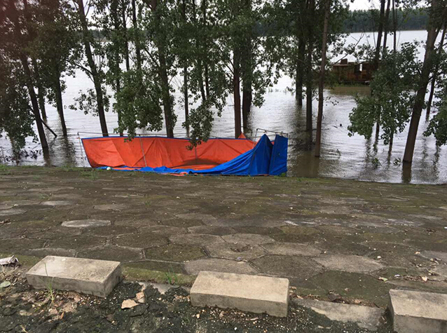 7月4日凌晨,因遭夜風(fēng)暴襲擊,我街值守點(diǎn)帳篷出現(xiàn)部分垮蹋,大集建設(shè)集團(tuán)組織工作人員帶上設(shè)備、材料奔赴漢江干堤防汛前線,為值守點(diǎn)重新搭建帳篷。