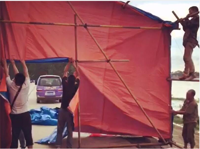 大集建設(shè)集團(tuán)公司義務(wù)為防汛干堤搭建帳篷