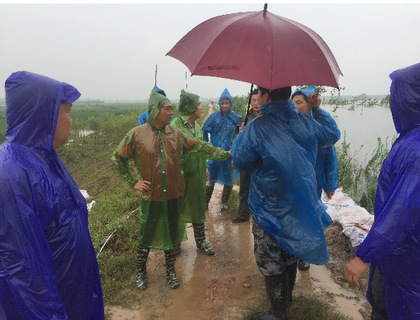 雨不停地在下,水不停地漲,水位超過(guò)了警戒線。桐湖堤防邊抗洪搶險(xiǎn)形勢(shì)異常嚴(yán)峻,王洪波、周勝書(shū)兩位項(xiàng)目經(jīng)理彰顯男兒本色,一邊跟戰(zhàn)斗在第一線的同志們鼓舞打氣,告訴大家:“前方勇士請(qǐng)堅(jiān)持,后續(xù)部隊(duì)馬上到”、“我們來(lái)了六十五人的大團(tuán)隊(duì)”,另一邊率領(lǐng)項(xiàng)目人員組成的后援大軍支援到第一線。