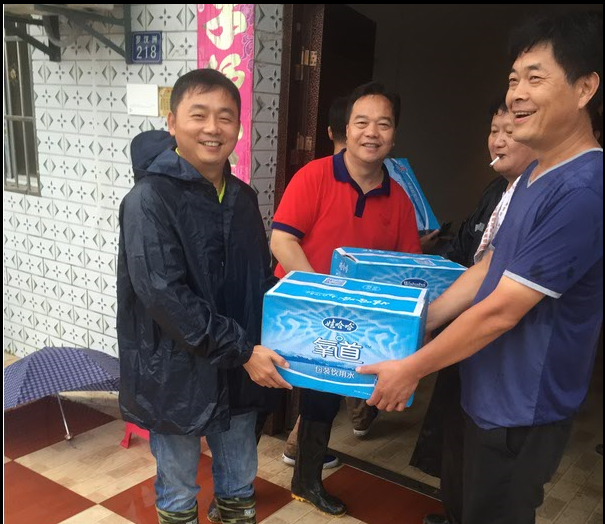“天災(zāi)無情,人間有愛”。2016年7月19日,湖北大集建設(shè)集團有限公司在董事長徐濤和總經(jīng)理徐遠征率領(lǐng)下,副總經(jīng)理徐家富、項目經(jīng)理徐斌、梁前松等公司領(lǐng)導和骨干力量代表集團公司的心意冒雨來到了受災(zāi)嚴重的蔡甸區(qū)沉湖大堤。