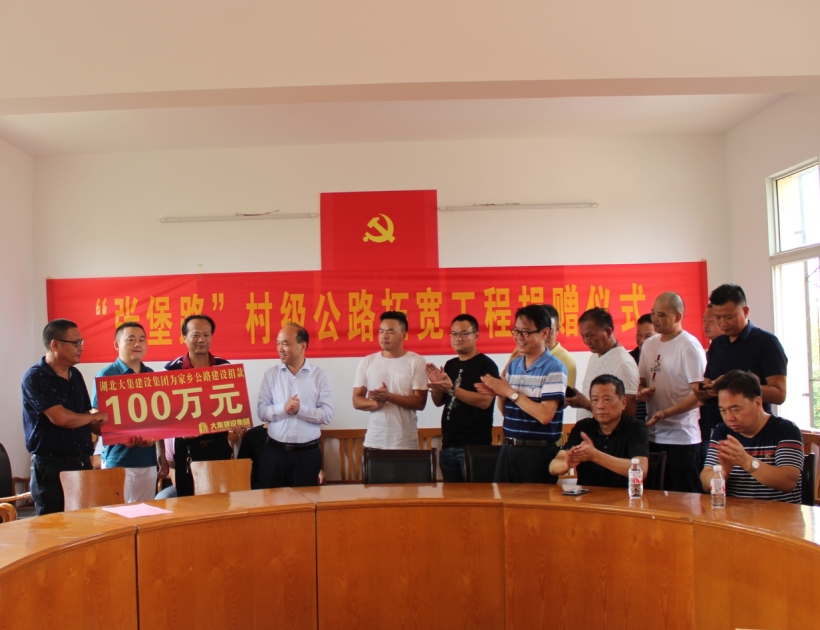 情系家鄉(xiāng)發(fā)展,勇?lián)鐣?huì)責(zé)任。7月26日,集團(tuán)董事長(zhǎng)徐濤、總經(jīng)理徐遠(yuǎn)征、副總經(jīng)理徐家富及各項(xiàng)目經(jīng)理來(lái)到蔡甸區(qū)大集街堡家咀村村委會(huì),為“張堡路”村級(jí)公路拓寬工程進(jìn)行捐贈(zèng),集團(tuán)董事長(zhǎng)徐濤代表湖北大集建設(shè)集團(tuán)為該工程捐款一百萬(wàn)元。